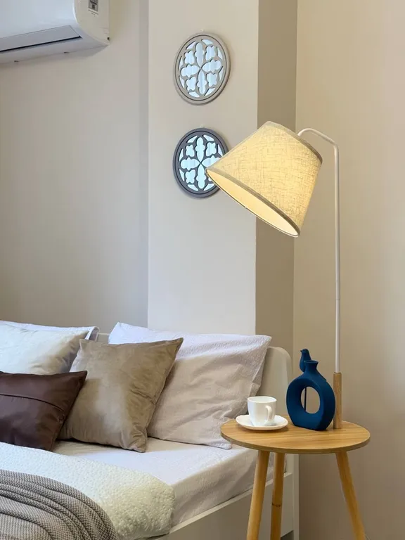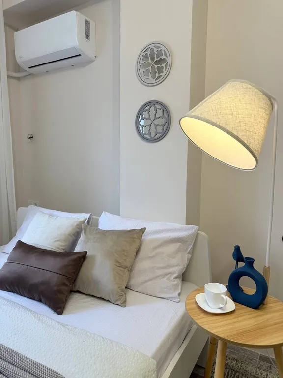 В комнате квартиры просторно и уютно. Она готова принять вас и ваших близких. При необходимости вы сможете регулировать температуру благодаря установленному кондиционеру.