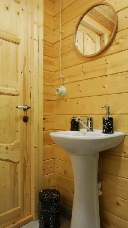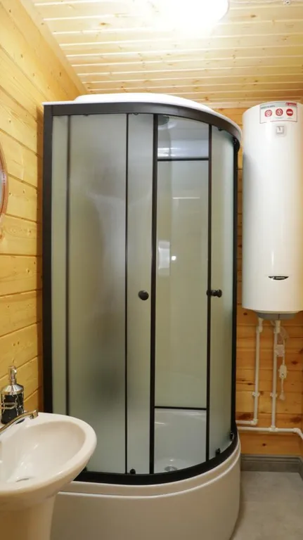 Индивидуальная ванная комната: душ, раковина, туалет.