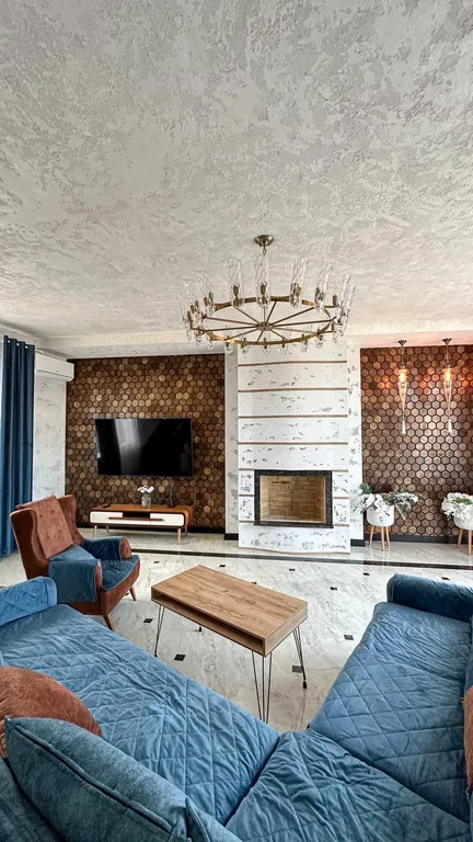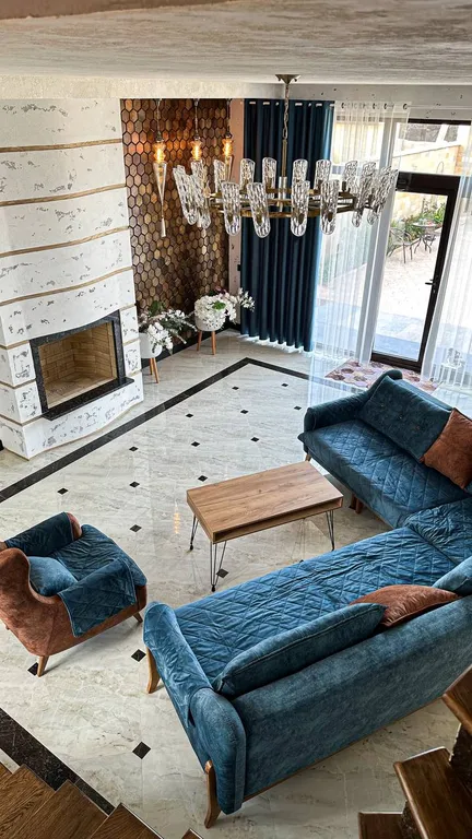 3 спальни, 2 кухни, 3 ванные комнаты, большой зал с дровяным камином, прачечная. Дизайнерский ремонт и мебель по индивидуальному заказу.